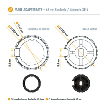- Dieser leistungsstarke Markisenmotor mit 40 Nm Drehmoment und 80 kg Zugkraft eignet sich für Markisen mit bis zu 5 m Ausladung, inkl. Adapter für Markisen-Rundwellen mit 63 mm Außendurchmesser und Montagezubehör.