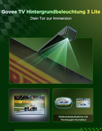 - Verbesserte Govee Envisual Technologie: Der Chip der Lite 3 TV Hintergrundbeleuchtung bietet eine stärkere Leistung mit einer Fish-Eye korrekturfunktion, die den Wirkungsbereich erweitert und eine genauere Farbanpassung an den Rändern ermöglicht.