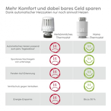 - Programmierte Einstellungen spontan ändern: von überall die smarte Heizungssteuerung per Hama Smart Home-App nachregeln, z.B. vom Büro, wenn früher Feierabend