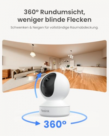 - 360°-Abdeckung & Auto-Tracking: Mit 355° Schwenkfunktion und Auto-Tracking deckt diese Indoor Kamera den gesamten Raum ab. Sie folgt Bewegungen in Echtzeit – ideal für die Überwachung von Babybett oder Haustierplatz.